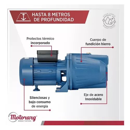 Electrobomba autoaspirante “BF”, de gran poder de aspiración y cebado, diseñada para bombear hasta 8 metros de profundidad. Son recomendadas para trabajar bombeando desde pozos abiertos o cisternas, colocando siempre una válvula de retención de pie en el extremo de la cañería de aspiración.
